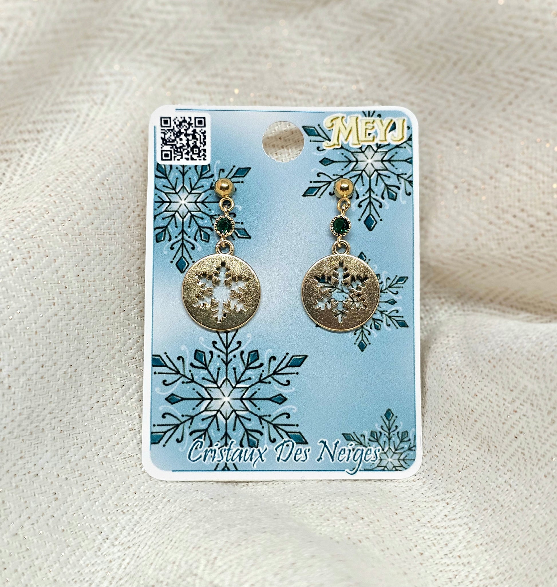 Boucles D'oreilles Flocon De Noël Cristal vert