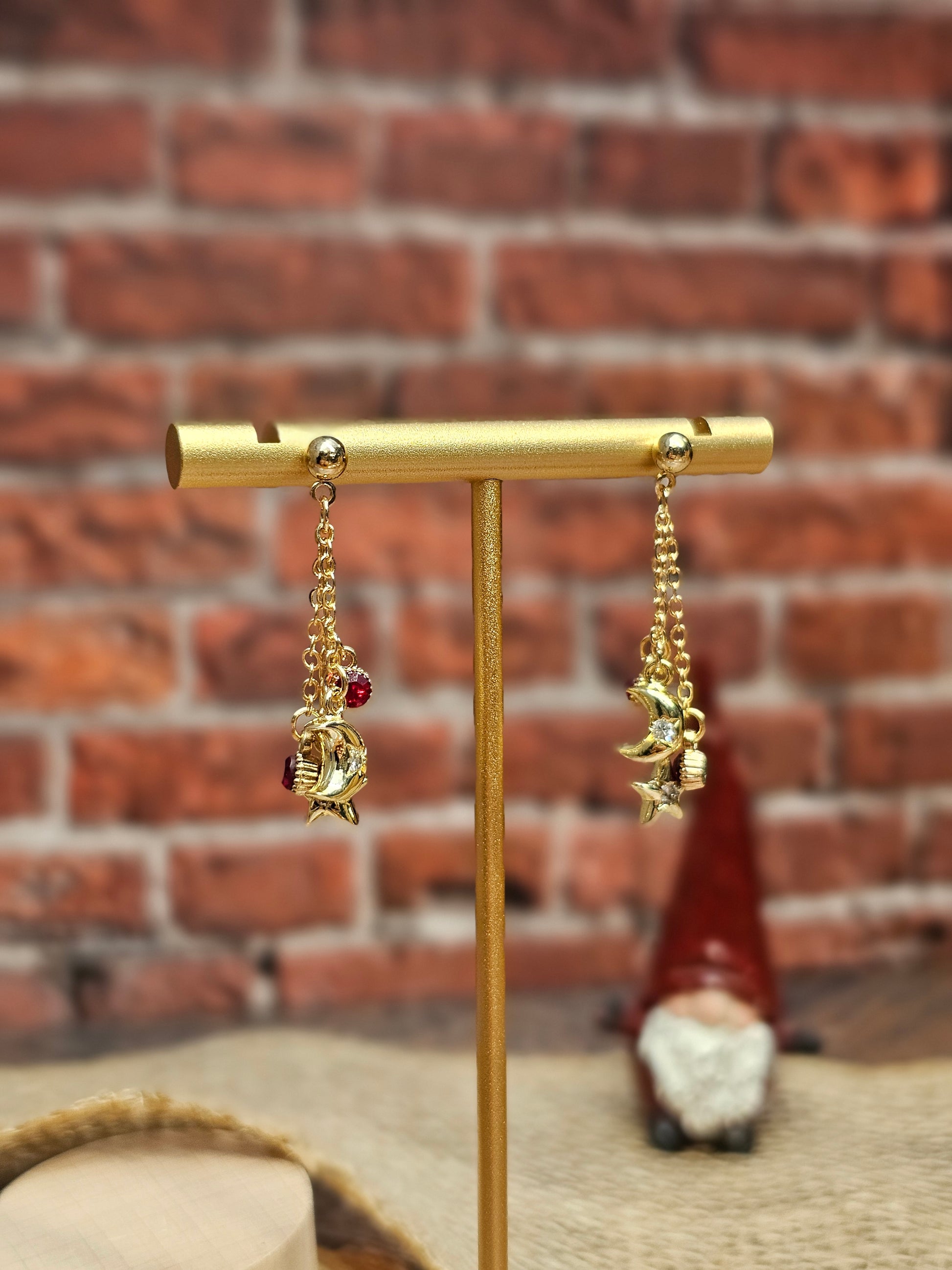 Ensemble de chaîne avec une jolie lune, une étoile et quelques cristaux en verre rouge.