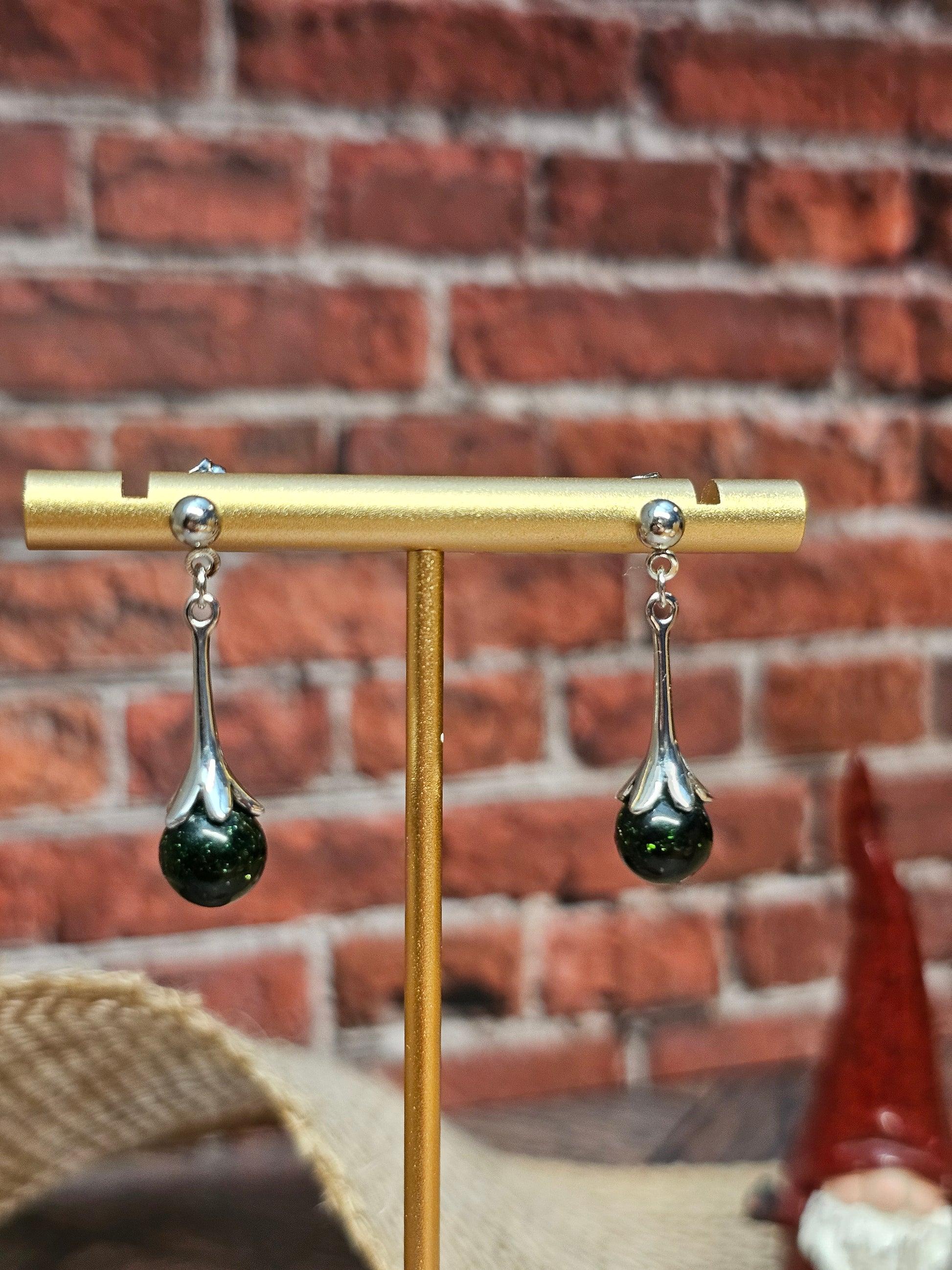 Assemblées avec une jolie tige argentée et des perle pailletée bleu nuit ou verte sapin