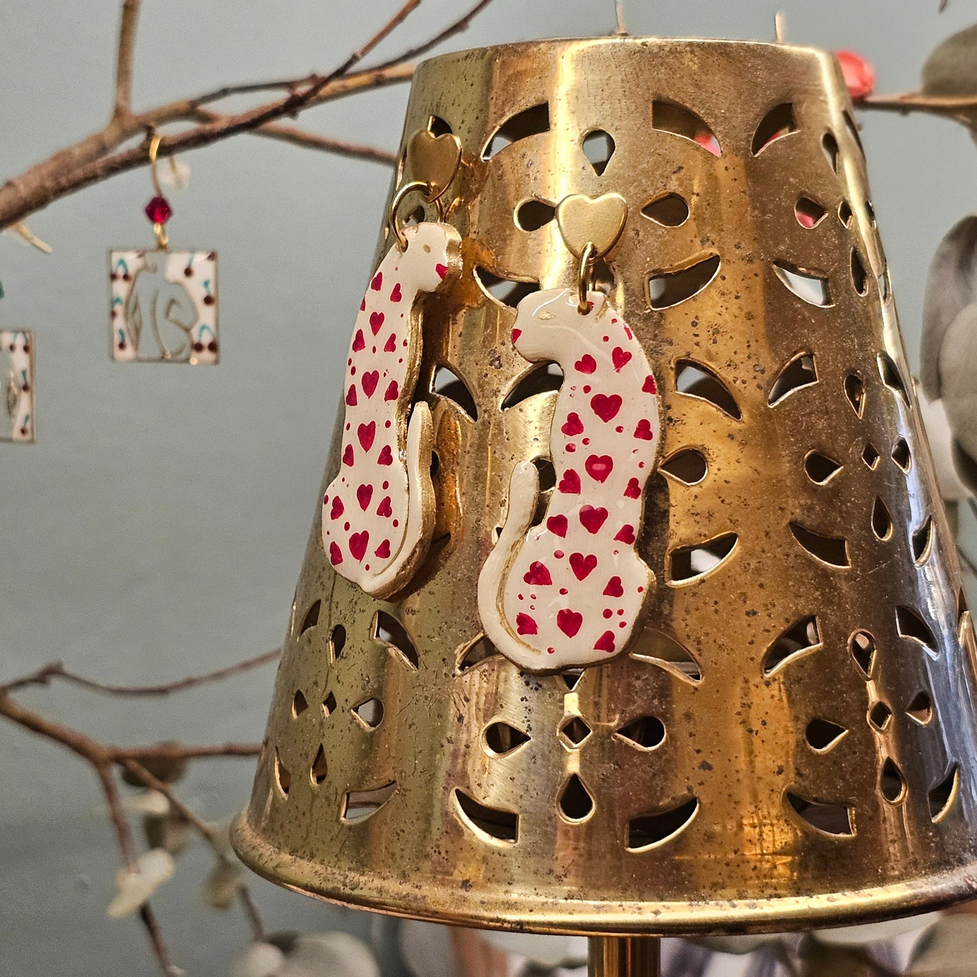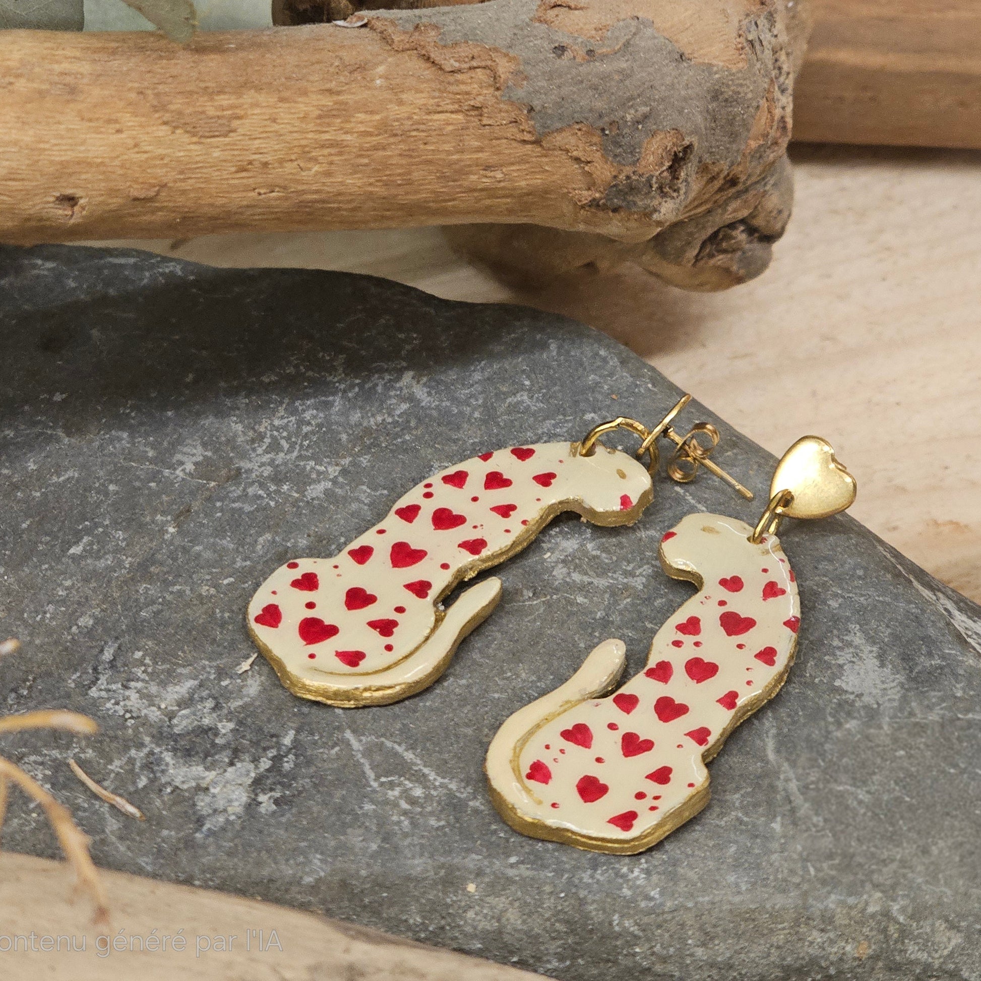 Des boucles d’oreilles romantiques en forme de panthère, peints à la main et parsemés de petits cœurs ❤️