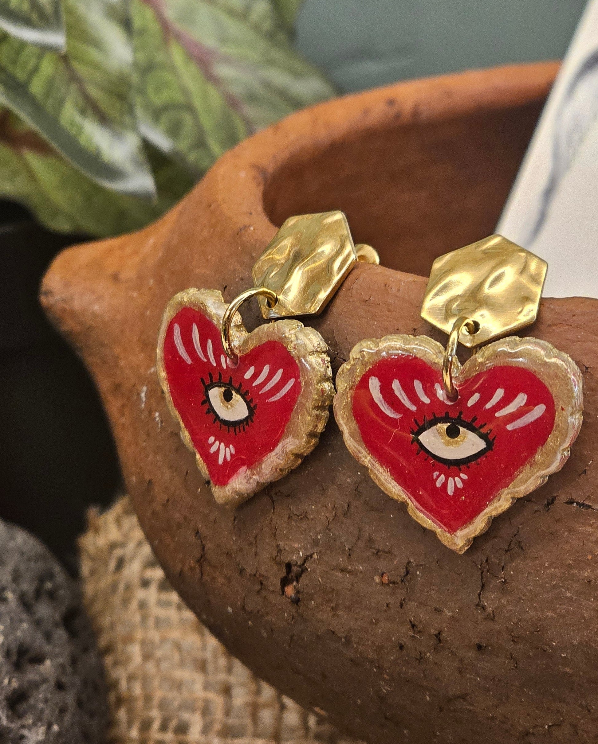 Ces boucles d’oreilles s’inspirent du cœur sacré mexicain, symbole puissant d’amour, de passion, de protection et de dévotion.